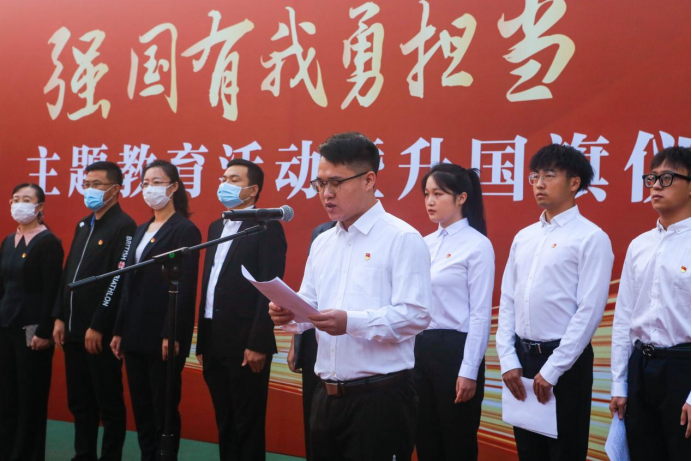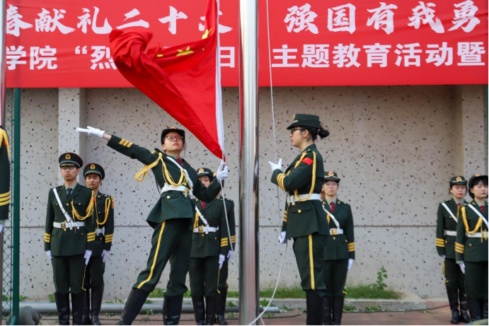 早晨7点钟,仪式准时开始。首先进行第一项:升国旗,奏国歌。然后在场全体师生为共和国革命先烈默哀1分钟。接着由各二级学院代表发言,以表达对烈士的追思和对二十大的献礼。