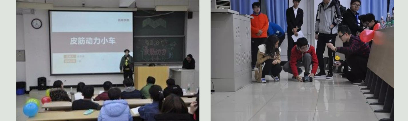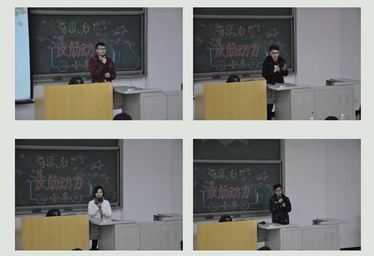 奇思妙想制作大赛初赛结束一周后,决赛于2017年11月15日在A楼224教室举办。本次决赛项目是皮筋动力小车,是一个非常考验同学们的创造力和动手能力的项目选手们有一周的时间在场下进行制作,利用废弃的饮料瓶等物品制作仅以皮筋为动力的小车。大一新生前来观赛,比赛场面火热,参赛者投入其中,观看者加油助威,一场激烈的角逐就此拉开。