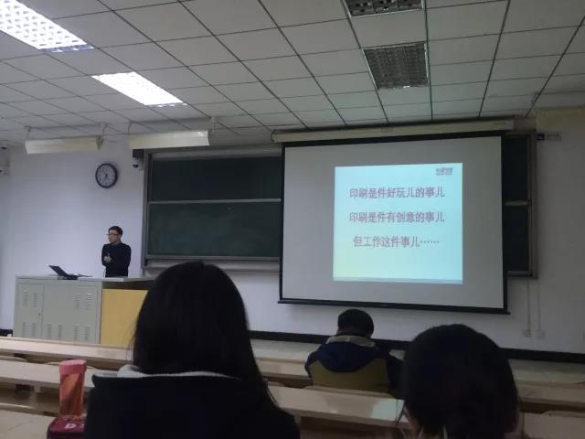 学长向大三学生分享了他在大学的生活和职场的经历,告诉他们印刷在生活中是必不可少的,它已经和AR、VR等很多新兴科技相结合,现如今中国印刷工业发展的趋势较为乐观,印刷学子要改变对它的传统印象。