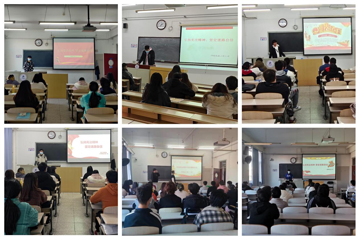 新形势新任务迫切要求我们加强宪法宣传教育,推动宪法宣传教育常态化、长效化,使宪法精神深入人心,以宪法精神凝心聚力。为深入贯彻落实习近平总书记关于宪法学习宣传教育的系列重要指示精神,机电工程学院于11月29日-12月4日期间组织18、19、20级本科生召开了宪法学习主题班会。