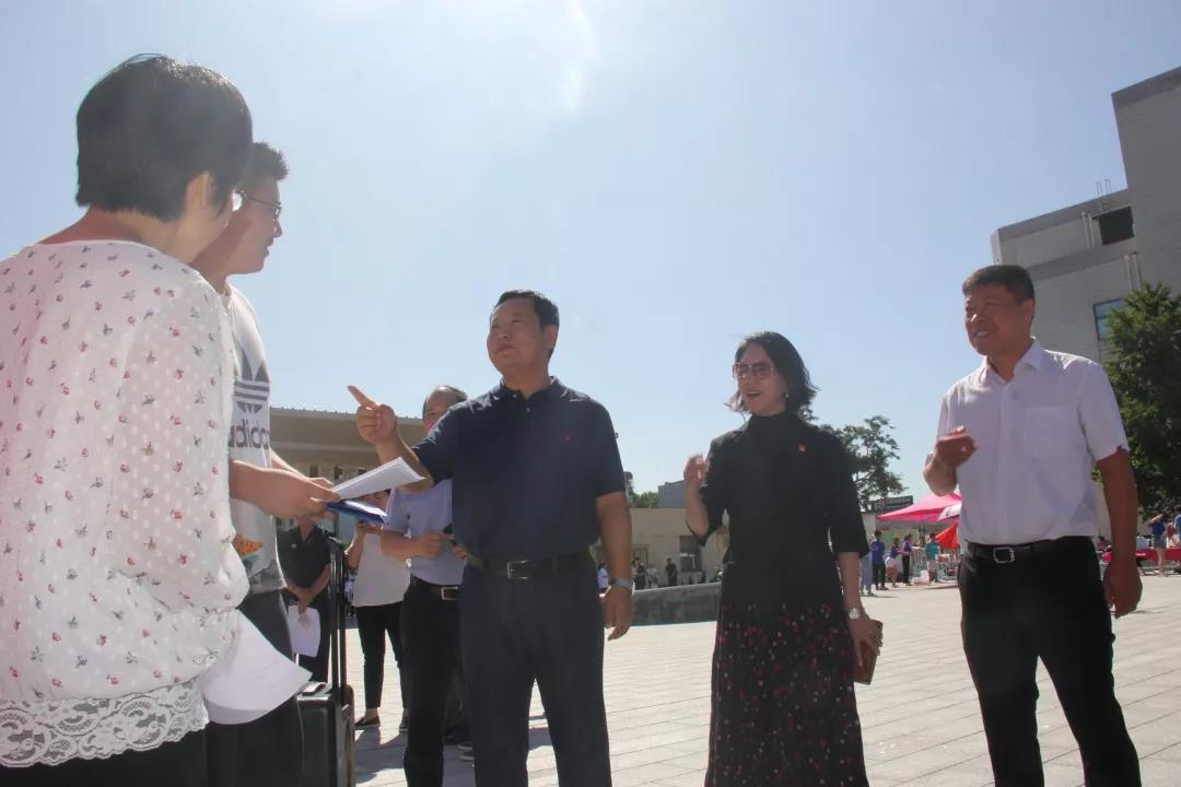 在迎新过程中,校院领导也来导员处关心迎新工作的开展情况,并慰问在场的所有迎新的工作人员。