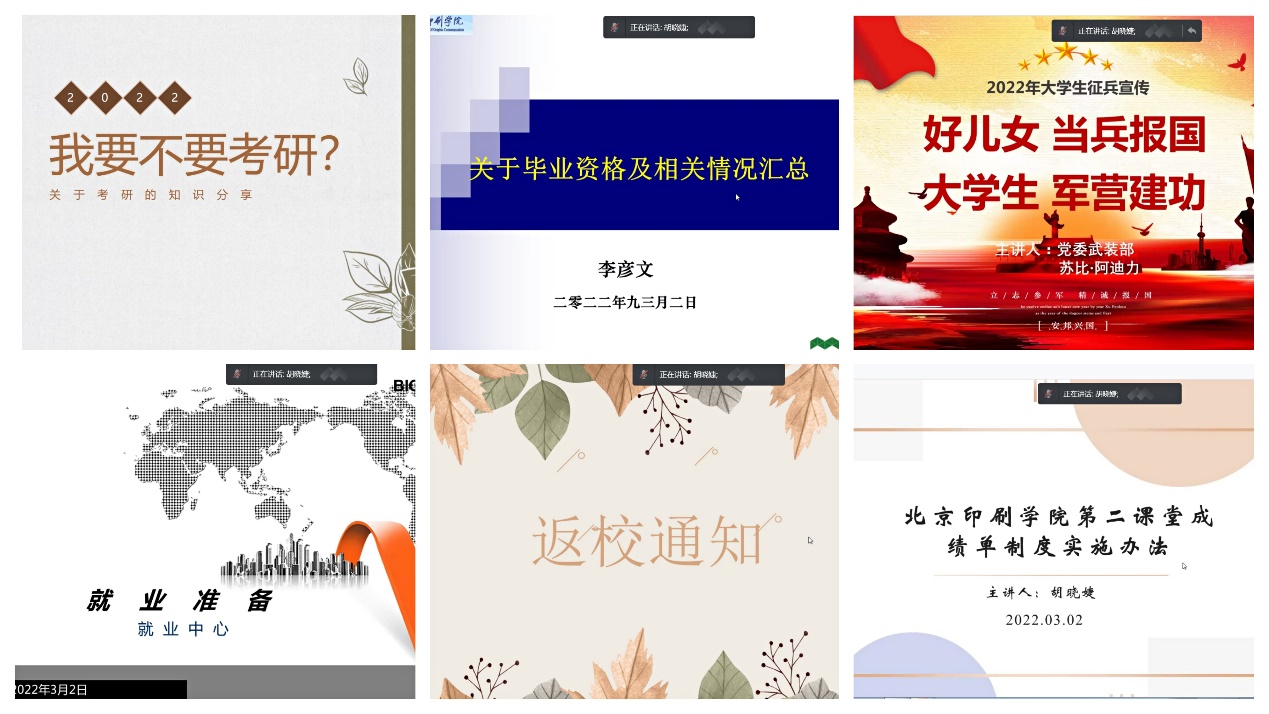 胡晓婕详细介绍了本科生“第二课堂”管理系统,从学习模块、学分要求以及申请认定周期等方面进行了说明,并根据现状进一步强调了“第二课堂”的重要性,提醒学生们尽早完成“第二课堂”的学习任务。