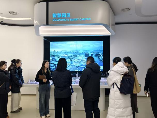 活动伊始,在金风科技人资专员高晓萌的热情引导下,学院师生深入探访了金风科技股份有限公司展厅及园区核心区域。金风科技深度聚焦能源开发、能源装备、能源服务、能源应用四大领域,以强大科研创新和最佳业务实践,将可再生能源的效率提升至新高度。作为在深交所、港交所两地上市的公司,金风科技多次入选“气候领袖企业”、“亚洲地区最受尊敬公司”、“最佳投资者关系公司”,并荣登“全球最具创新能力企业50 强”、“全球最环保企业200强”、“全球新能源企业500强”、“新财富最佳上市公司”、“《财富》中国500强”、年度ESG实力先锋企业、A股公司ESG百强等多个影响力榜单。