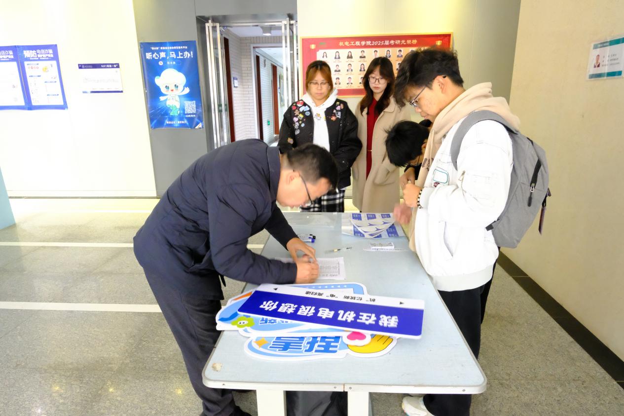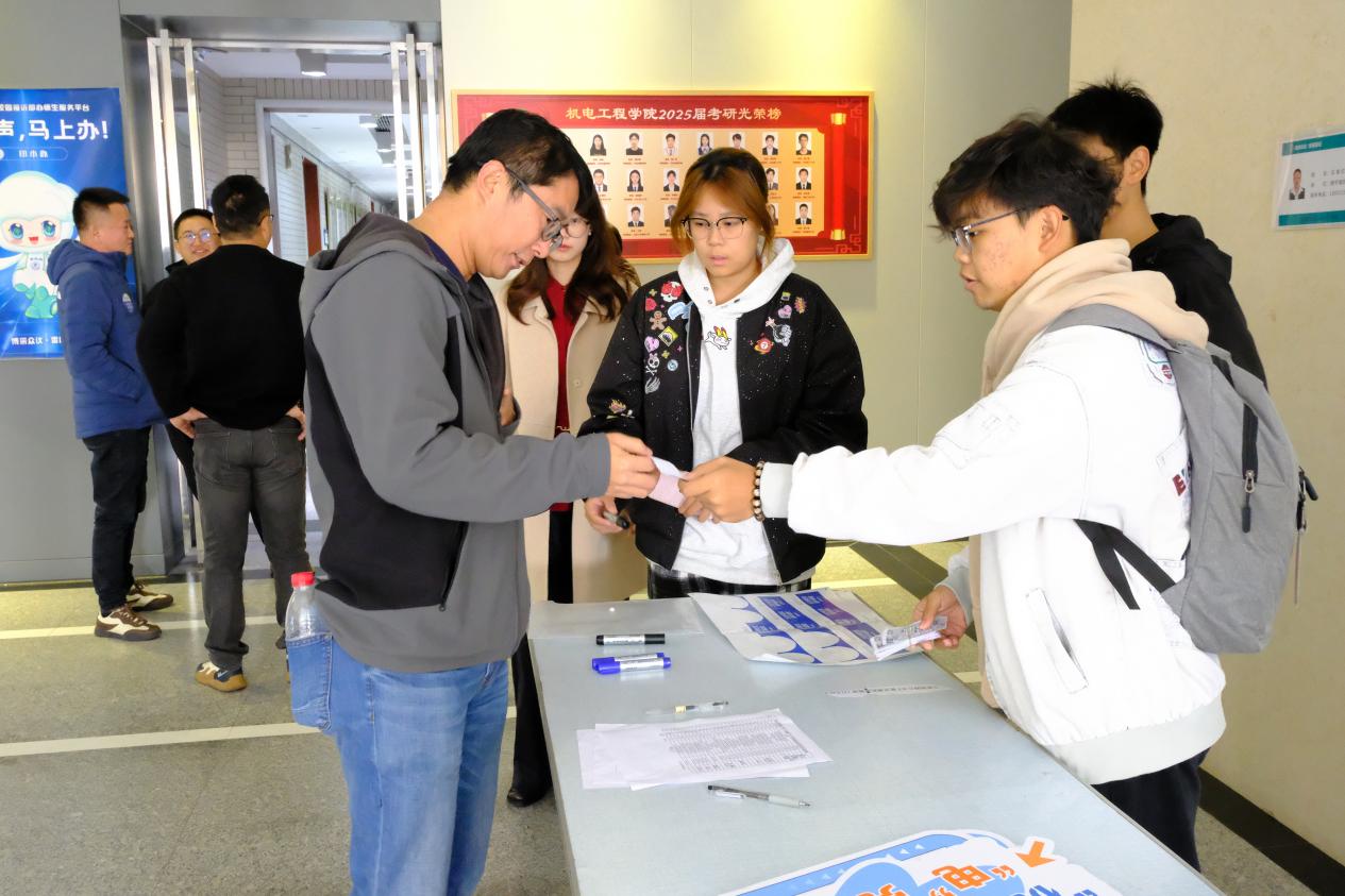上午9点,机电工程学院教学楼前已是人声鼎沸、暖意融融。志愿者们早早到位,面带微笑迎接每一位返校校友,主动上前帮忙,热情指引签到流程,用细致周到的服务让校友们瞬间找回“回家”的亲切感。