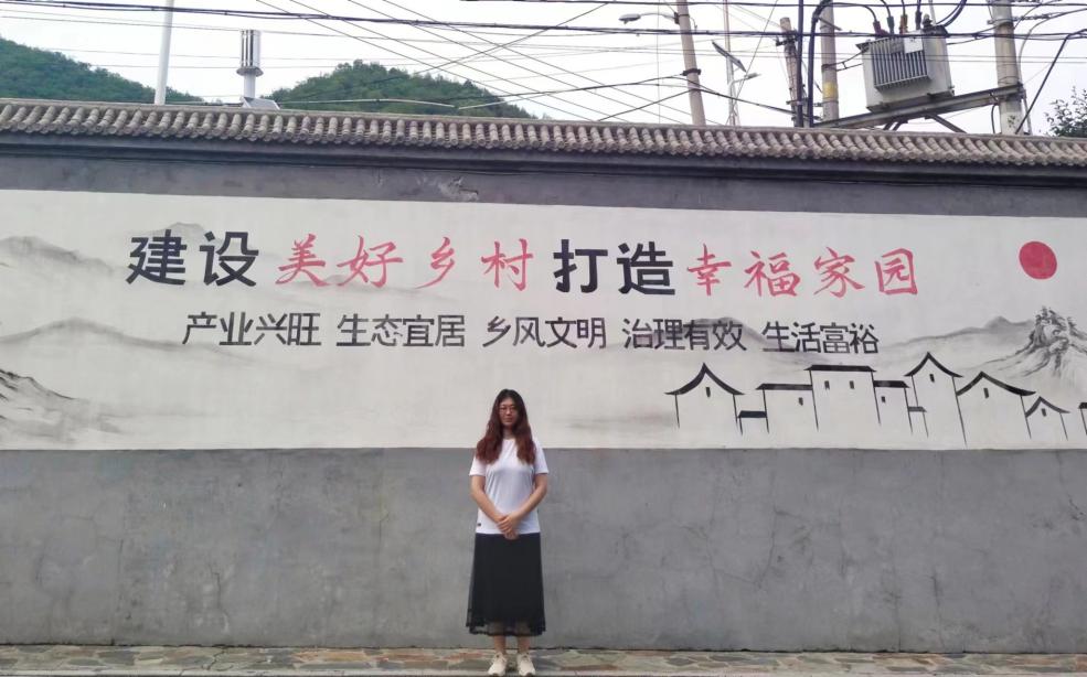 团队成员与乡村标语合影