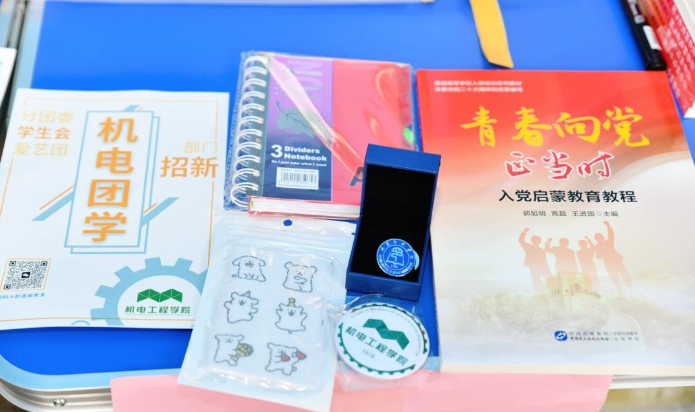 学院还为新同学们准备了包括文具用品、校徽、院徽、防蚊贴、团学招新宣传单等在内的新生礼包。一“电”倾“新”,温暖启航,秀出闪光新学期打卡拍照活动,让同学们定格与机电工程学院相遇的第一天。
