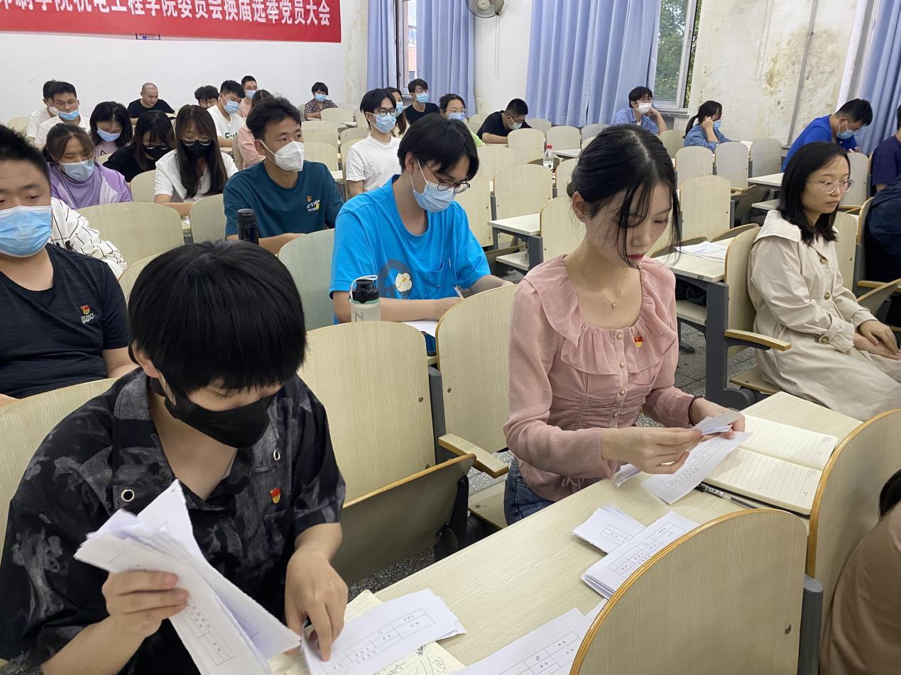 2022年09月28日,机电工程学院研究生党员在N3B-406召开会议,会议主要内容为何馨韵、李兴兴、刘延琳、苏现阳、杨文凯、杨钊、朱茜琳同志预备期满转为正式党员。